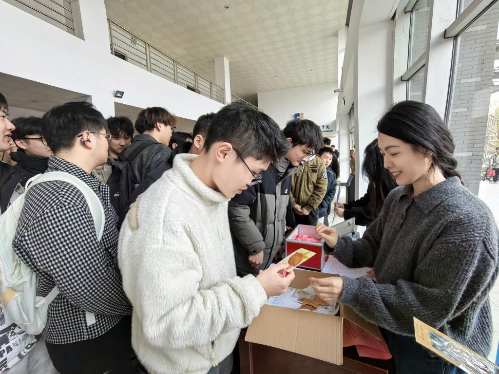 慰问现场,辅导员与心理工作站老师共同将百余枚满载关怀的书签送至考研学子手中,并与他们亲切交流,详细了解备考状态与需求。心理工作负责人张悦老师表示,这些书签不仅承载着美好的祝福与鼓励,更是备考路上的“心灵加油站”,希望大家能带着这份温暖从容应考。收到书签的同学们纷纷表示,学院的关怀和学弟学妹的祝福让他们倍感鼓舞,备考之路也更有信心和动力。