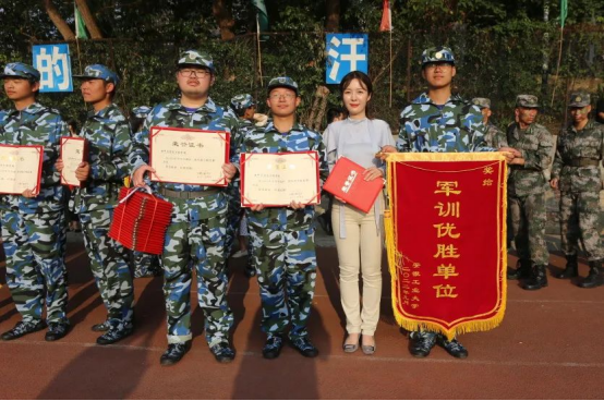 在2022级新生军训工作中荣获"军训优胜单位"称号、队列评比一等奖、军歌合唱比赛二等奖,甘如美江老师荣获"军训优秀指导教师"称号。