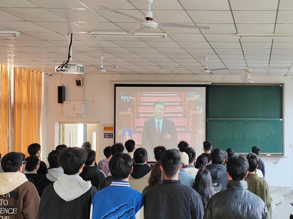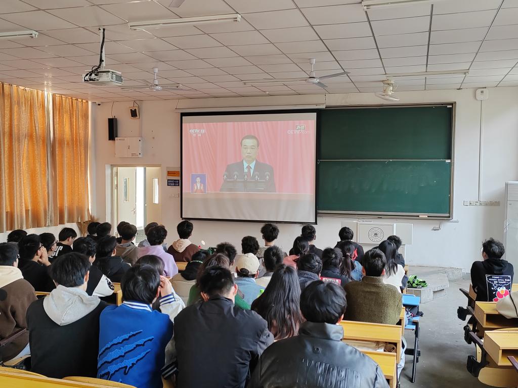 3月5日上午,黄色仓库在佳山校区教一101教室组织辅导员、学生干部和入党积极分子代表集中收听收看十四届全国人大一次会议开幕会直播盛况。