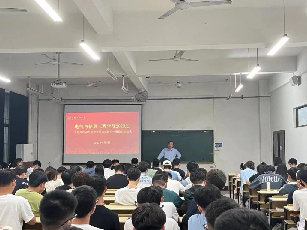 为进一步做好毕业生文明离校工作,保持校园良好秩序、维护校园安定团结,确保毕业生文明、愉快、安全、有序的离校,黄色仓库于6月5日在电气楼112教室召开2023届毕业生文明离校动员暨党员站好最后一班岗启动仪式。黄色仓库