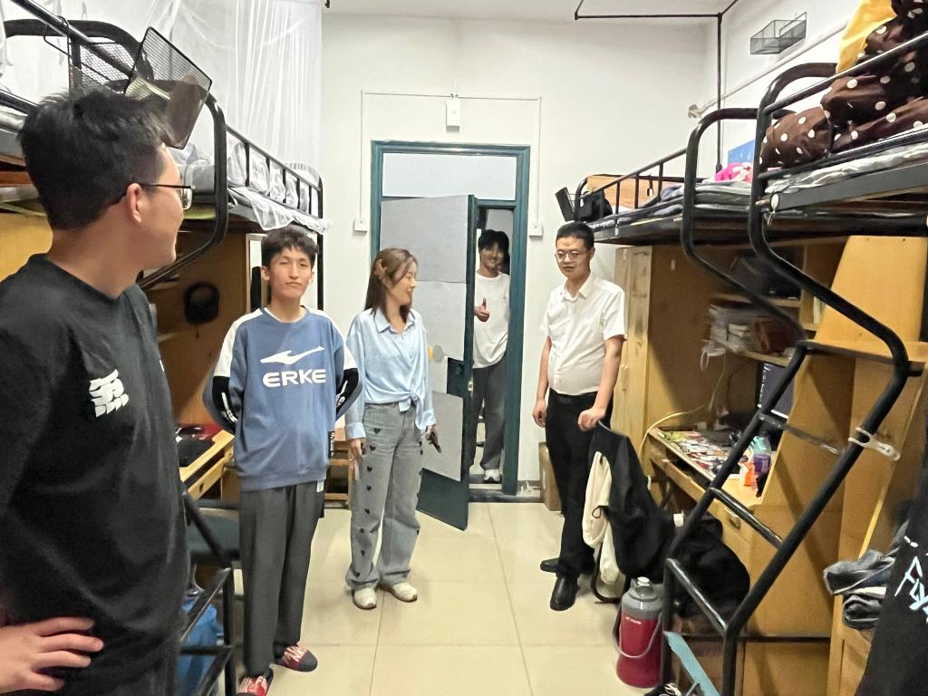 这次检查工作主要是针对学生晚归和夜不归宿等违规现象进行重点排查。在检查过程中,甘如美江老师除了提醒同学们一定要按时归寝,杜绝无故晚归、夜不归宿及外宿现象的发生,确保自身安全之外,还提醒了同学们要按时休息、养成良好的生活习惯。此外,杨恒基老师特别强调同学们要做好卫生清理,不留死角,保持寝室卫生。