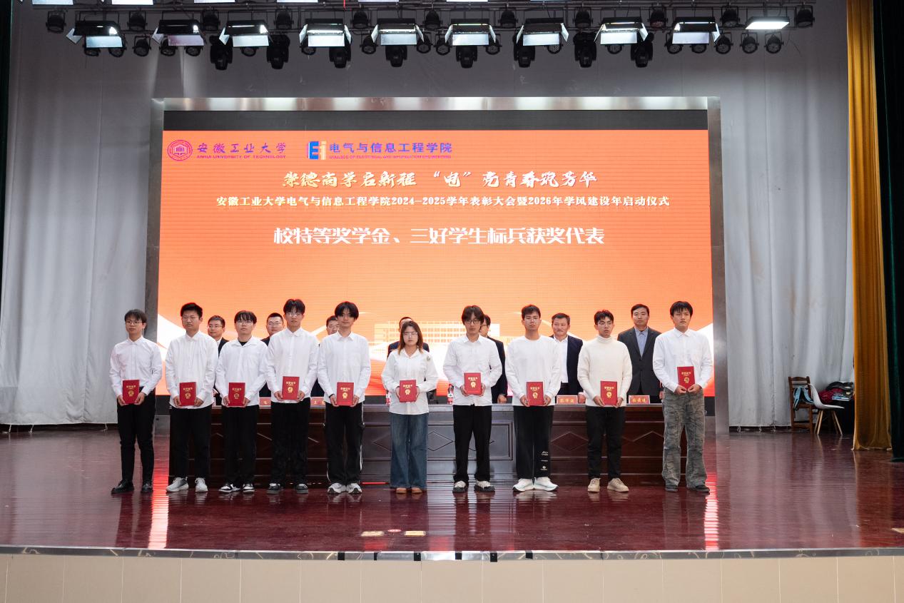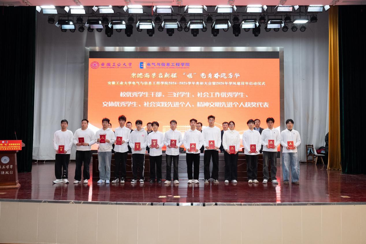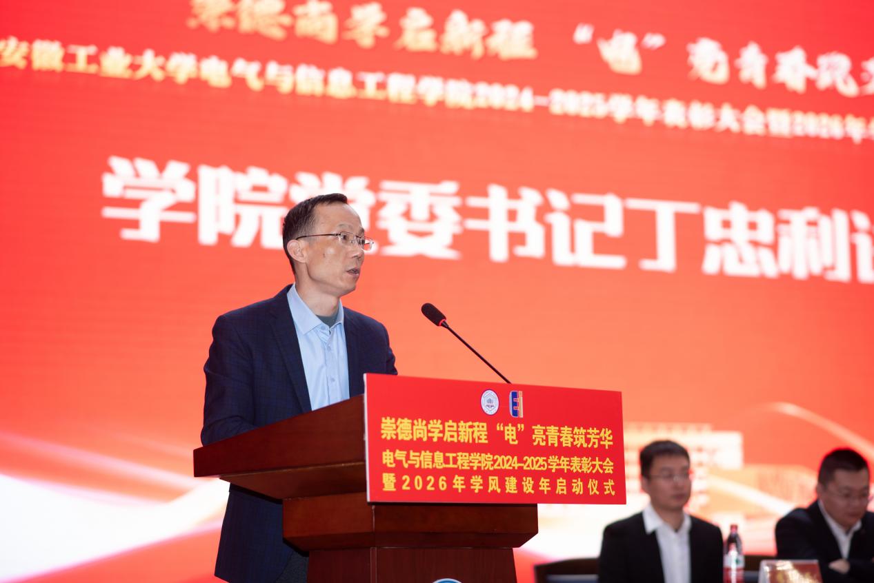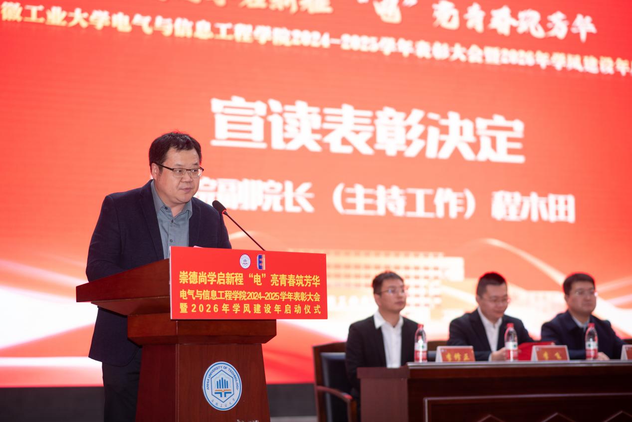 以“崇德尚学启新程,‘电’亮青春筑芳华”为主题,在秀山校区新大学生活动中心报告厅隆重举办2024-2025学年表彰大会暨2026年学风建设年启动仪式。学生工作部副部长王萌、学院党委书记丁忠利、副院长(主持工作)程木田、党委副书记、纪委书记、副院长孔洋波、副院长李飞、副院长张前进等领导出席会议,学院全体辅导员及学生代表共计400余人齐聚现场,共同见证荣耀时刻,共绘学风建设新蓝图。