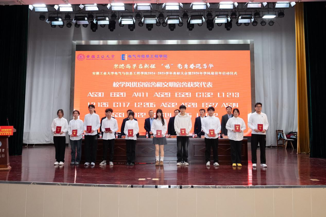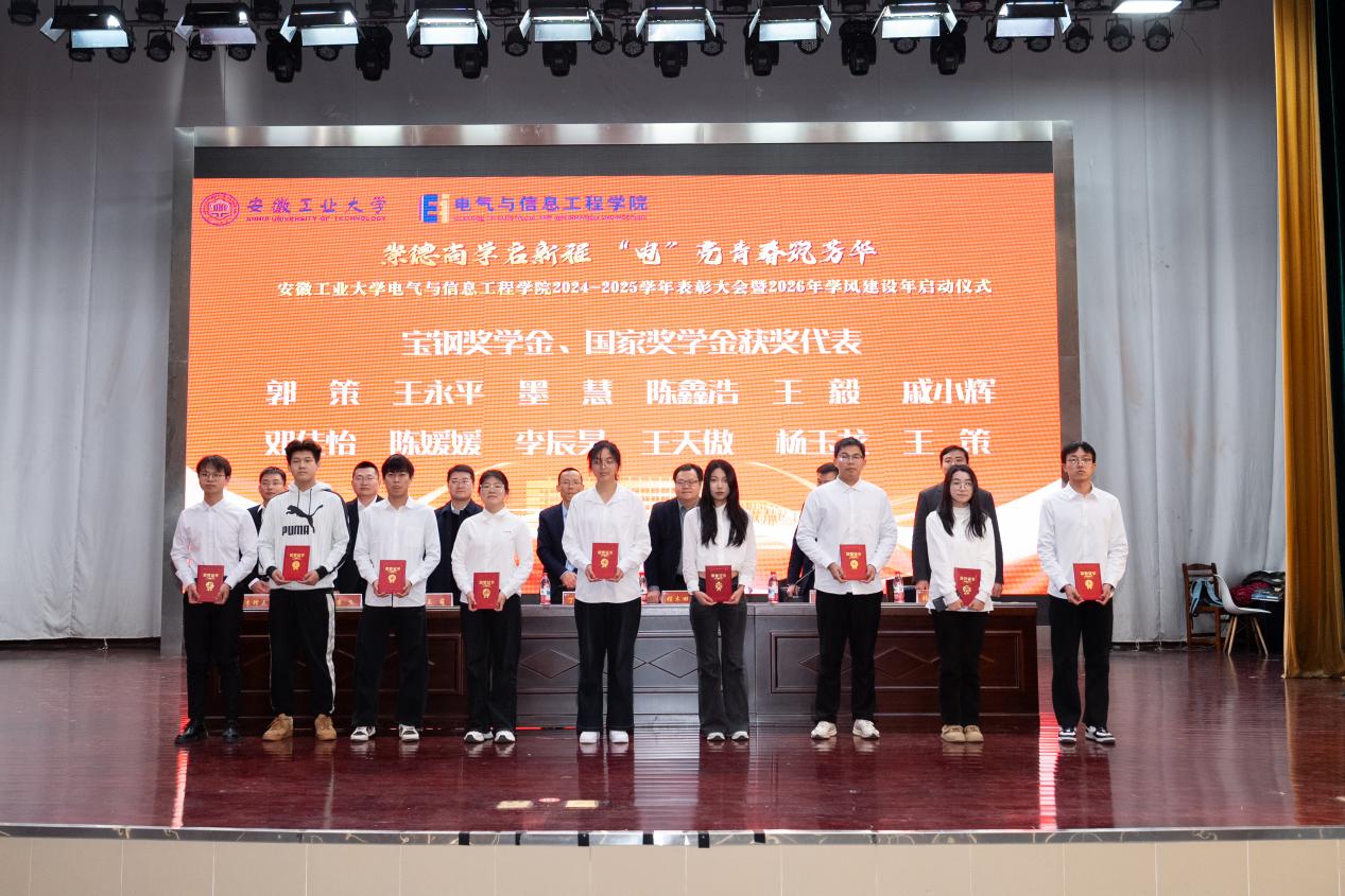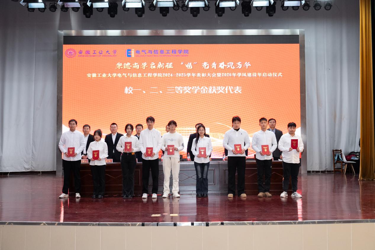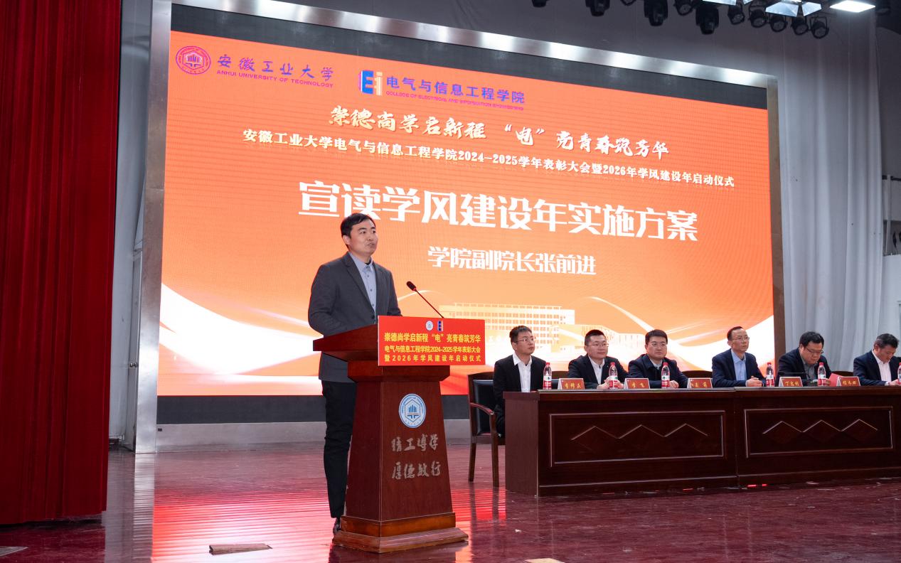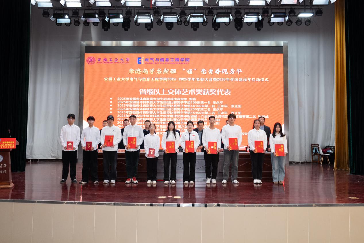 以“崇德尚学启新程,‘电’亮青春筑芳华”为主题,在秀山校区新大学生活动中心报告厅隆重举办2024-2025学年表彰大会暨2026年学风建设年启动仪式。学生工作部副部长王萌、学院党委书记丁忠利、副院长(主持工作)程木田、党委副书记、纪委书记、副院长孔洋波、副院长李飞、副院长张前进等领导出席会议,学院全体辅导员及学生代表共计400余人齐聚现场,共同见证荣耀时刻,共绘学风建设新蓝图。