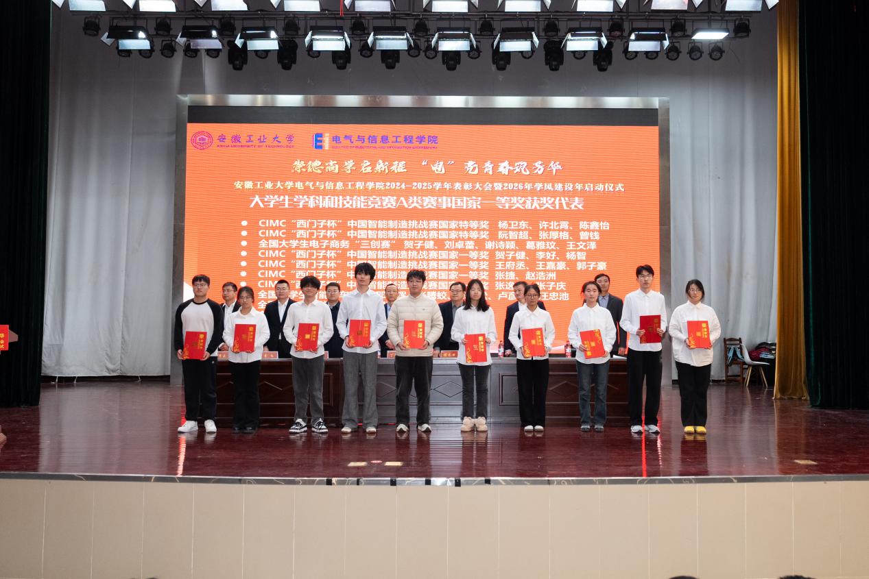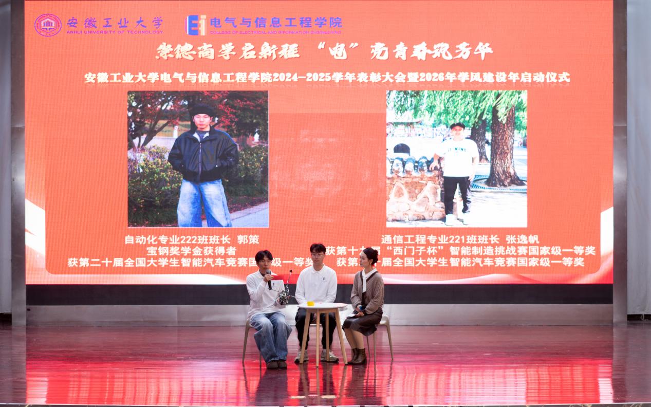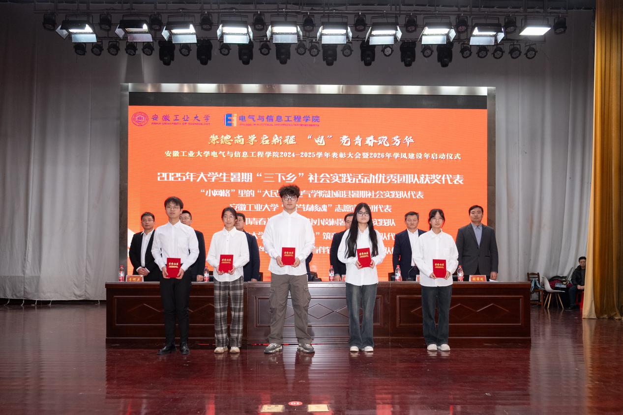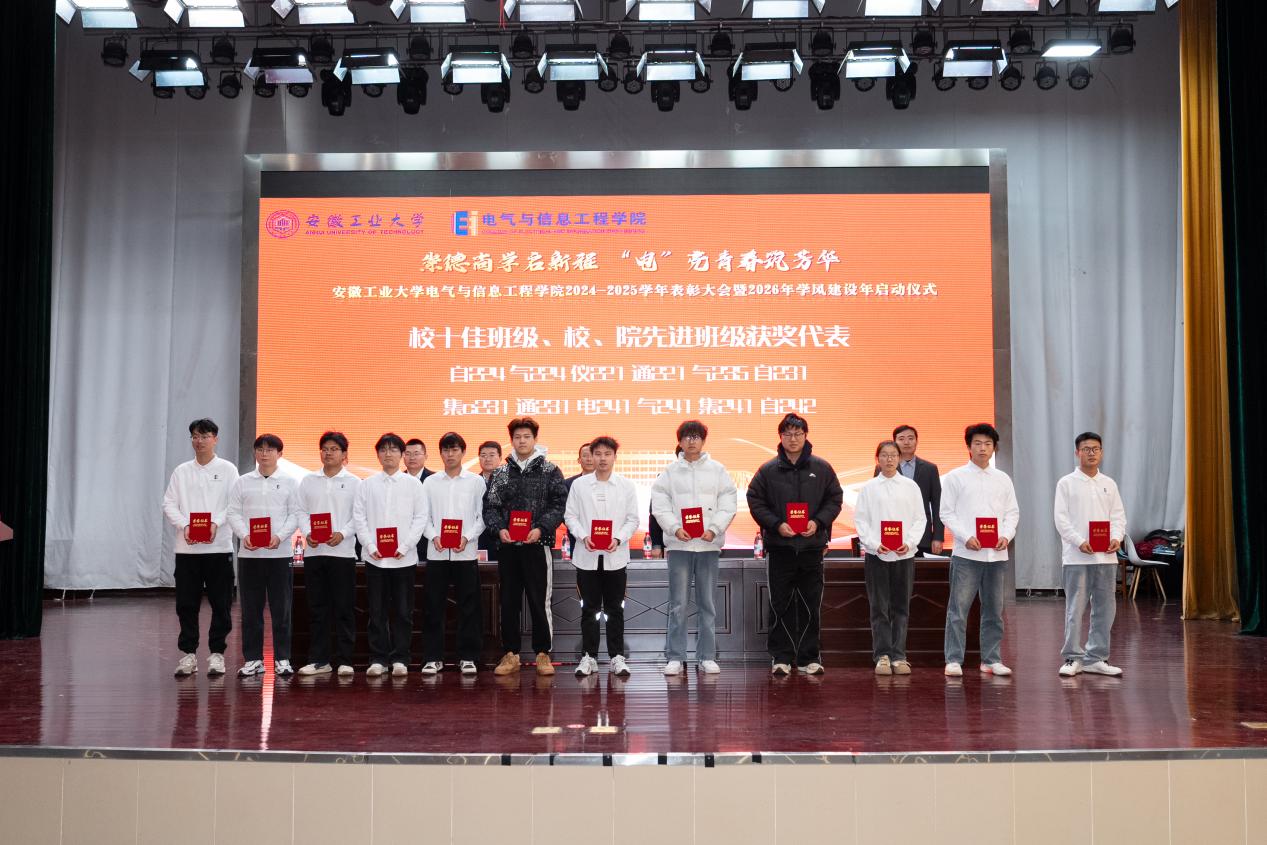 以“崇德尚学启新程,‘电’亮青春筑芳华”为主题,在秀山校区新大学生活动中心报告厅隆重举办2024-2025学年表彰大会暨2026年学风建设年启动仪式。学生工作部副部长王萌、学院党委书记丁忠利、副院长(主持工作)程木田、党委副书记、纪委书记、副院长孔洋波、副院长李飞、副院长张前进等领导出席会议,学院全体辅导员及学生代表共计400余人齐聚现场,共同见证荣耀时刻,共绘学风建设新蓝图。