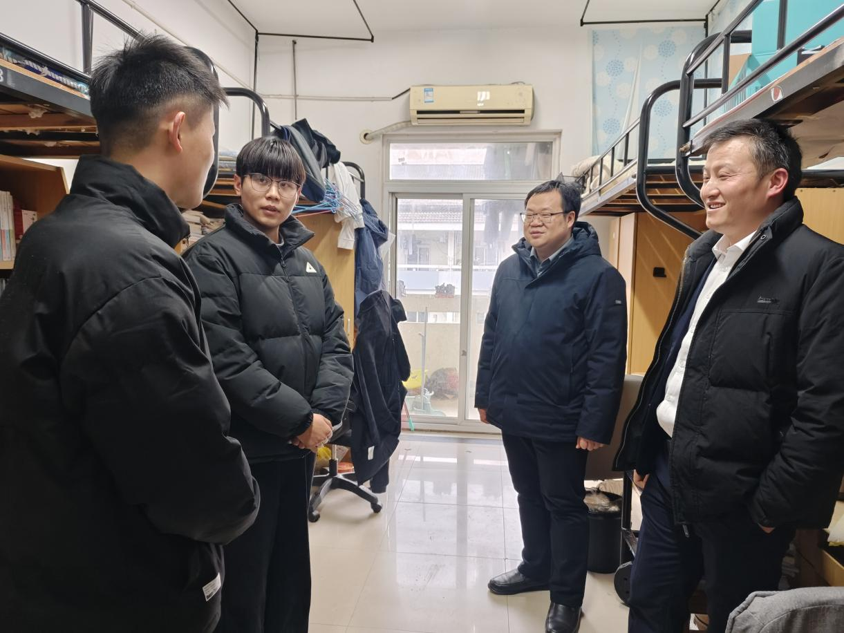 走访过程中,院领导与同学们面对面亲切交流,详细询问同学们近期学业进展、假期安排及考研、就业规划等情况,耐心倾听并一一回应同学们近期急难愁盼的各类诉求,叮嘱大家在元旦假期要提高安全防范意识,注意防火、防盗、防诈骗,严格遵守宿舍管理规定,杜绝使用违规电器、私拉电线等,合理安排作息时间,并向同学们送上学院诚挚的元旦问候与新年祝福。